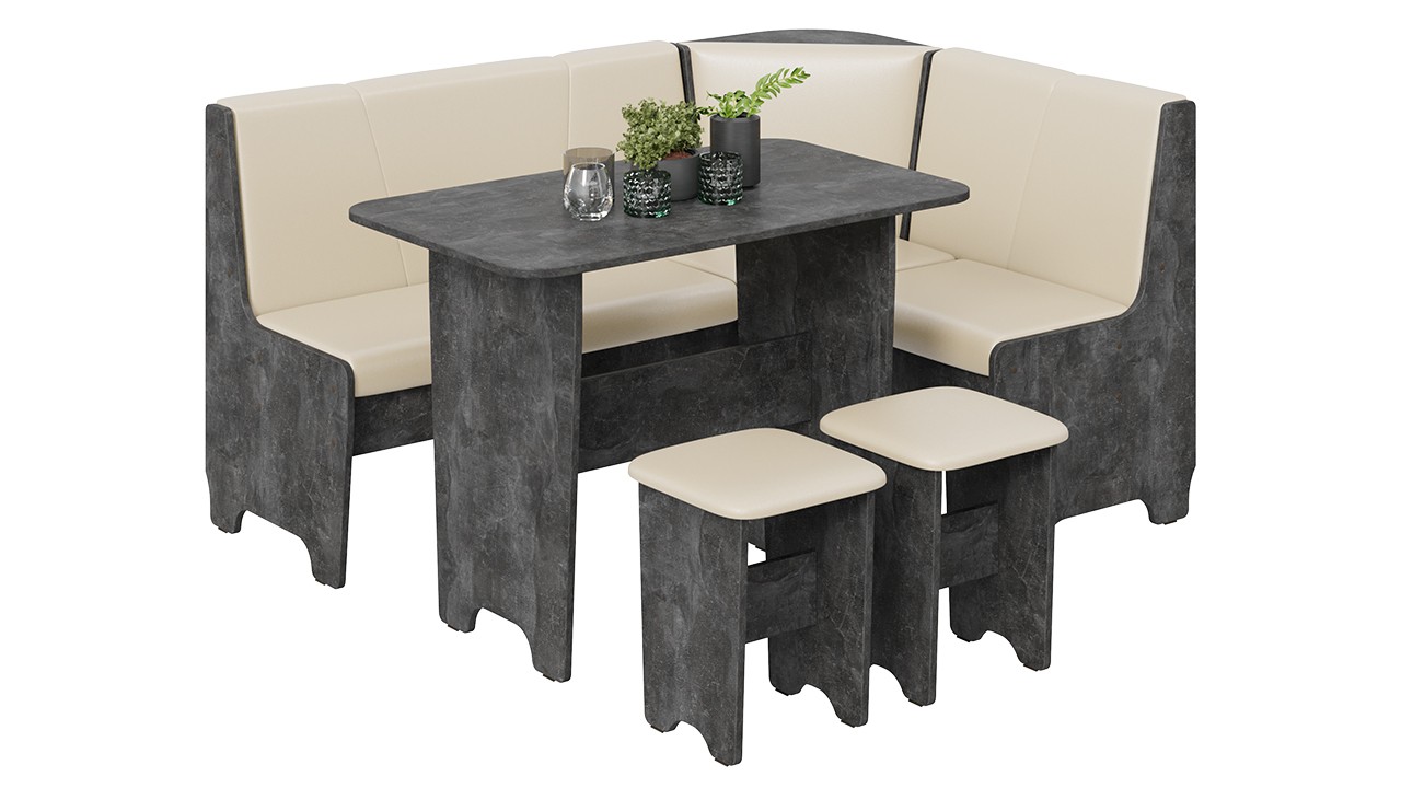 - Обеденная зона "Техас" состоит из удобной угловой скамьи, практичного стола и компактных табуретов.